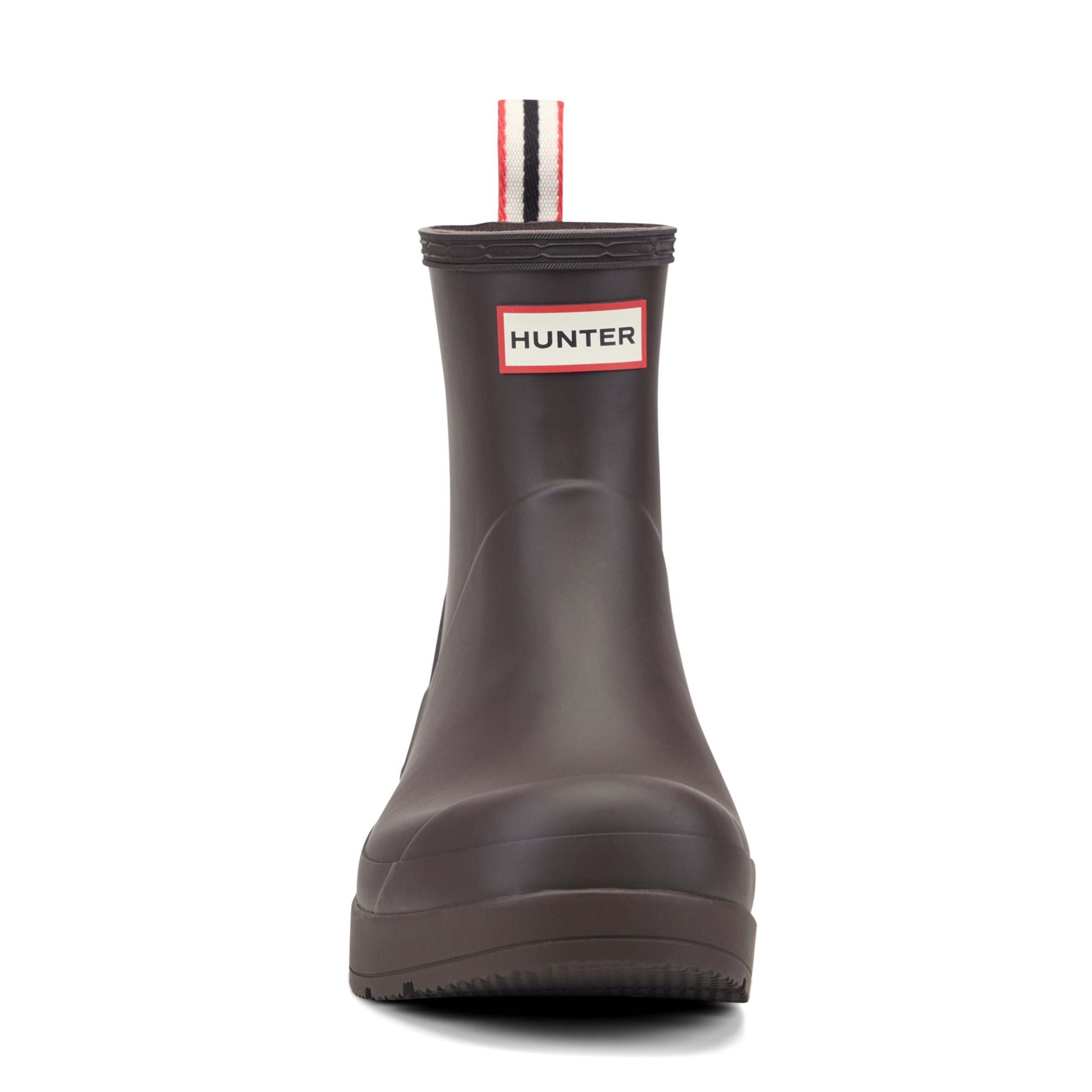 The Play Boot blends playfulness and practicality. A simplifying of the iconic design of the Original Boot. the Play Boot fast became a best-selling Hunter silhouette. Just grazing the top of the ankle. with a flatter sole and angled block heel for comfort. finished with a pull tab for easy foot entry. The design is crafted from the highest quality natural rubber. 100% recycled polyester lining and 100% waterproof.